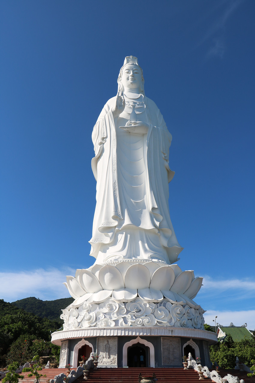 在山茶半岛,同事们鸟瞰岘港30公里的蔚蓝海岸线,令人心旷神怡,观赏了68米观音像。