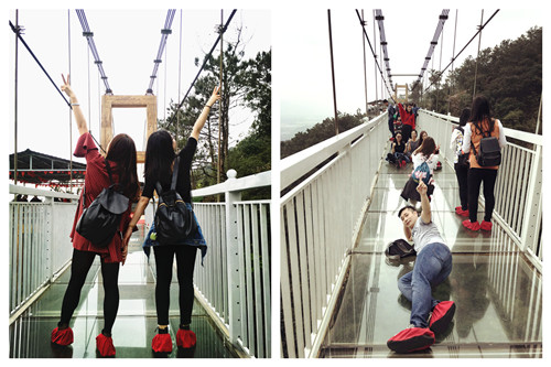 第二天早餐过后,前往牛鱼嘴风景区。里面的惊魂玻璃桥,全长219米,宽3米,高188米。